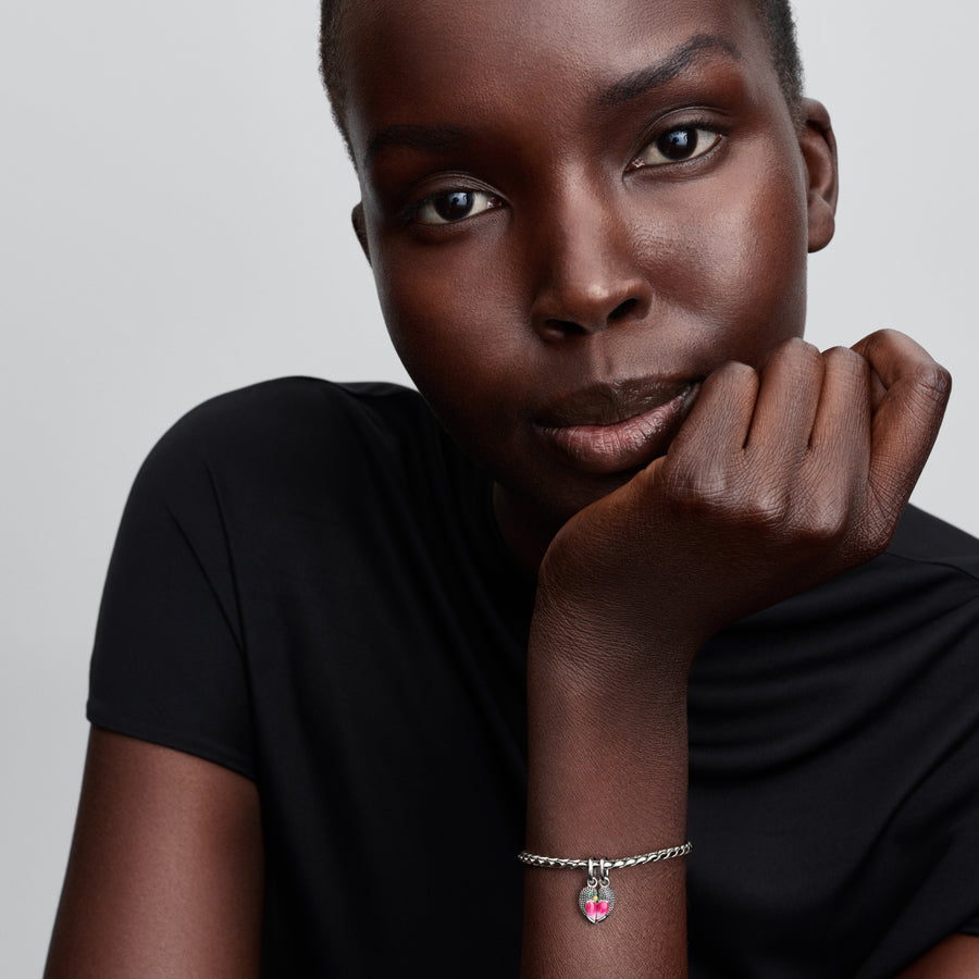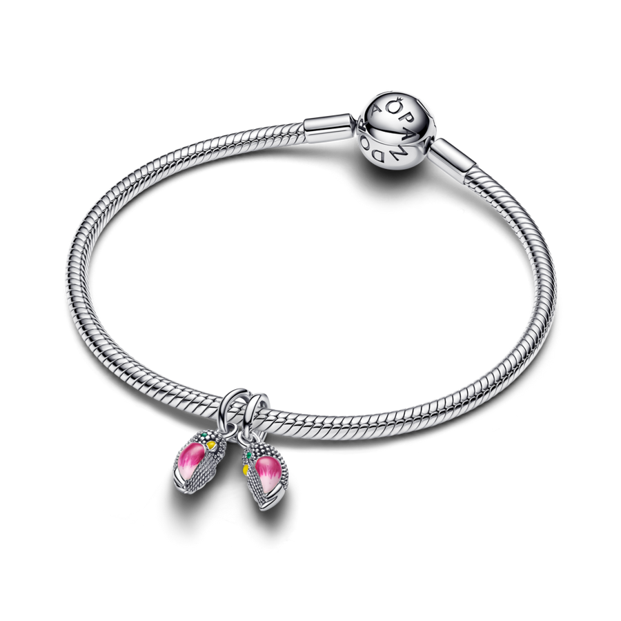 Pasidalinkite meile su mūsų dalijamu karoliuku. Kiekvienas karoliukas pagamintas iš sterlingo sidabro ir padengtas spalvingu emaliu. Vienas išgraviruotas užrašu „Iš to paties būrio“, kitas – „Mes laikomės kartu“.